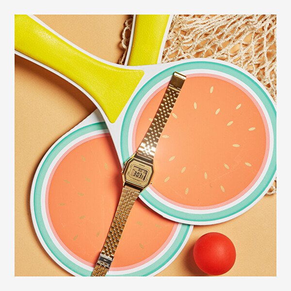 Casio ure v retro slogu ne izgubijo svojega šarma po nekaj desetletjih – nasprotno. Padajte v njihovo brezčasnost in ta eleganten dodatek pritrdite na zapestje. Njihovo ohišje se opira na kotno obliko, ki je pred kratkim spet na poti. Ura se pripne na zapestje z vlečenjem iz pozlačenega nerjavečega jekla. Zlato obloženi digitalni zaslon je po potrebi lahko osvetljen z modro LED, tako da ste lahko prepričani, da lahko trenutne podatke vidite sredi noči. Uživajte v dodatku, ki vas nikoli ne razočara.