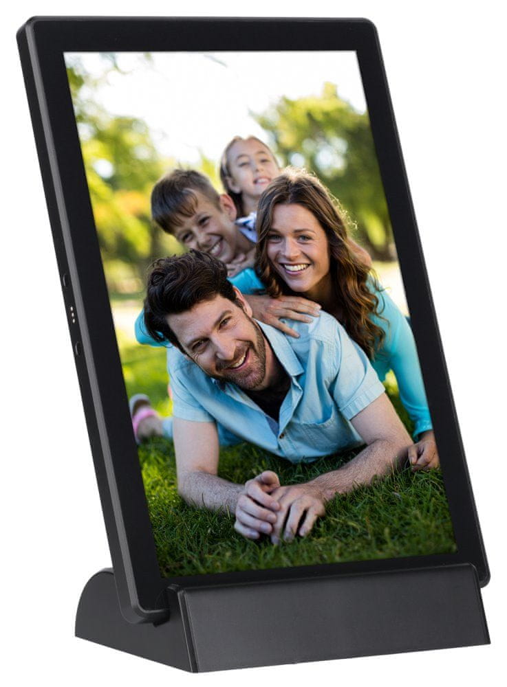 Digitalni okvir Wi-Fi-Fi za predstavitev fotografij in kratkih videoposnetkov (največ 15 s), ki temelji na operacijskem sistemu Android 6.0. Ima 10,1-palčni zaslon IPS na dotik z ločljivostjo 1280 × 800 pik, 1W zvočnik in 8 GB notranjega pomnilnika, v katerega lahko shranite do 7000 fotografij ali 250 videoposnetkov. Te lahko v okvir naložite prek mobilne aplikacije Frameo ali klasično prek pomnilniške kartice microSD ali zunanjega pomnilnika s priključkom USB-C. Okvir ima vgrajeno akumulatorsko baterijo s kapaciteto 3000 mAh, ki zagotavlja do 3 ur delovanja. Priloženo stojalo omogoča namestitev v ležečem in pokončnem položaju, prek njega pa lahko napolnite baterijo. Poleg tega je na voljo veliko različnih funkcij, kot so zrcaljenje v izklopljenem stanju, samodejno ali ročno vrtenje, nastavitev okvirja, podnapisi, skrivanje ali način spanja. V veselje vam bo tudi prikaz ure in vremena.