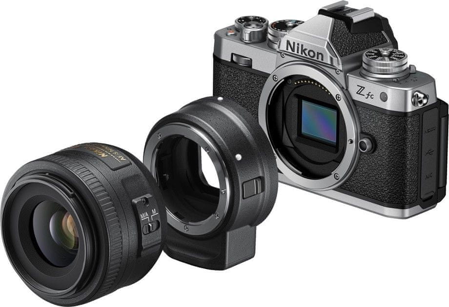 Nikon Z fc je dopolnjen s širokokotno lečo z zoomem NIKKOR Z DX 16–50 mm f/3,5–6,3 VR je idealen za širokokotne portrete ali panorame ter kompaktni objektiv s telefoto zoomom NIKKOR Z DX 50–250mm f / 4,5–6,3 VR z univerzalno uporabo in idealnimi dimenzijami za potovanja.