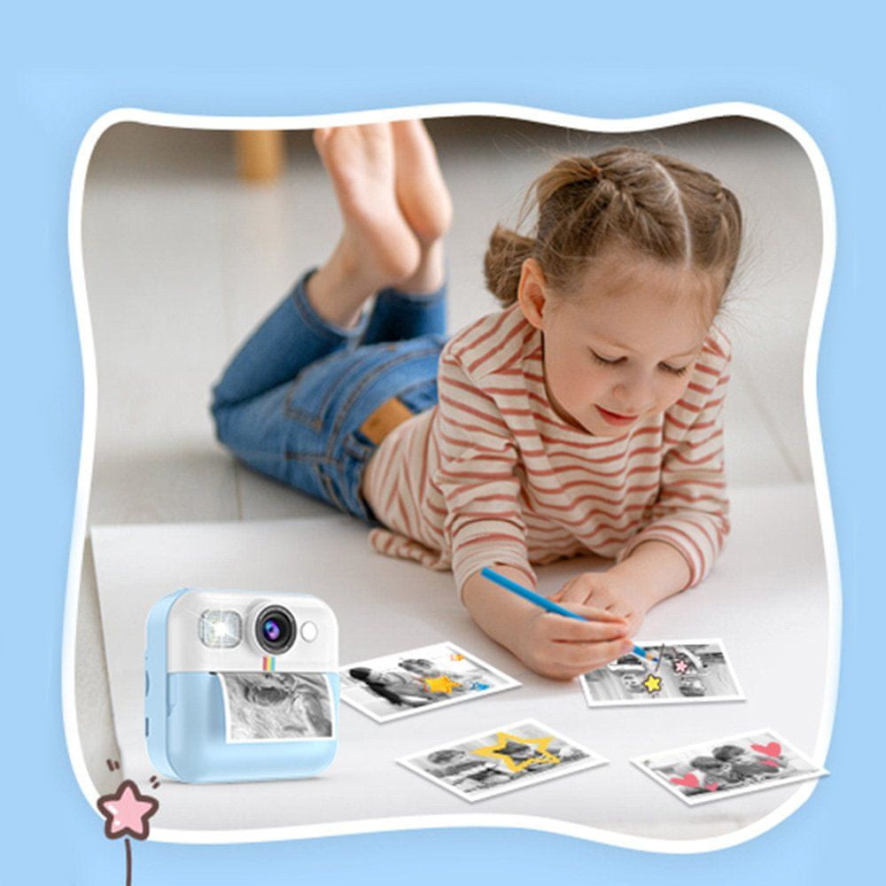 Detski fotoaparat, ki združuje funkcije digitalnega fotoaparata in termičnega tiskalnika, tako da lahko otroci takoj natisnejo svoje najljubše slike. Zahvaljujoč tehnološki tehnologiji termičnega tiskanja ni potrebe po črnilu ali dragih kartušah – preprosto vstavite zvitek papirja (3 priloženi) in takoj natisnite zajete fotografije.
