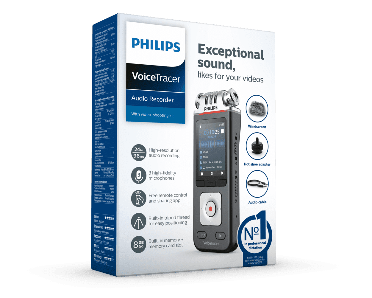 8 GB pomnilnika Povezava z računalnikom prek USB Izhodni priključek za slušalke (3,5 mm) Reža za kartice MicroSDHC do 32 GB 3 visokokakovostni mikrofoni Aplikacija za pametne telefone za enostavno deljenje posnetkov prek WiFi Aplikacija za daljinsko upravljanje (Google in Apple store) Predvajanje MP3 in WMA Glasovno aktivirano snemanje (VOR) 2" Barvni zaslon Snemanje v formatu PCM in MP3 Snemanje v formatu PCM 96 kHz / 24 bitov za vrhunsko snemanje glasbe Zvočna kulisa optimizira nastavitve zvoka za vse razmere Adapter za namestitev DSLR omogoča odličen zvok pri snemanju videa Pokrov mikrofona izboljša kakovost zvoka pri snemanju na prostem Vgrajena Li-pol baterija Trajanje baterije do 36 ur Kapaciteta baterije 1000 mAh Čas polnega polnjenja: 3 ure Navoj za stativ