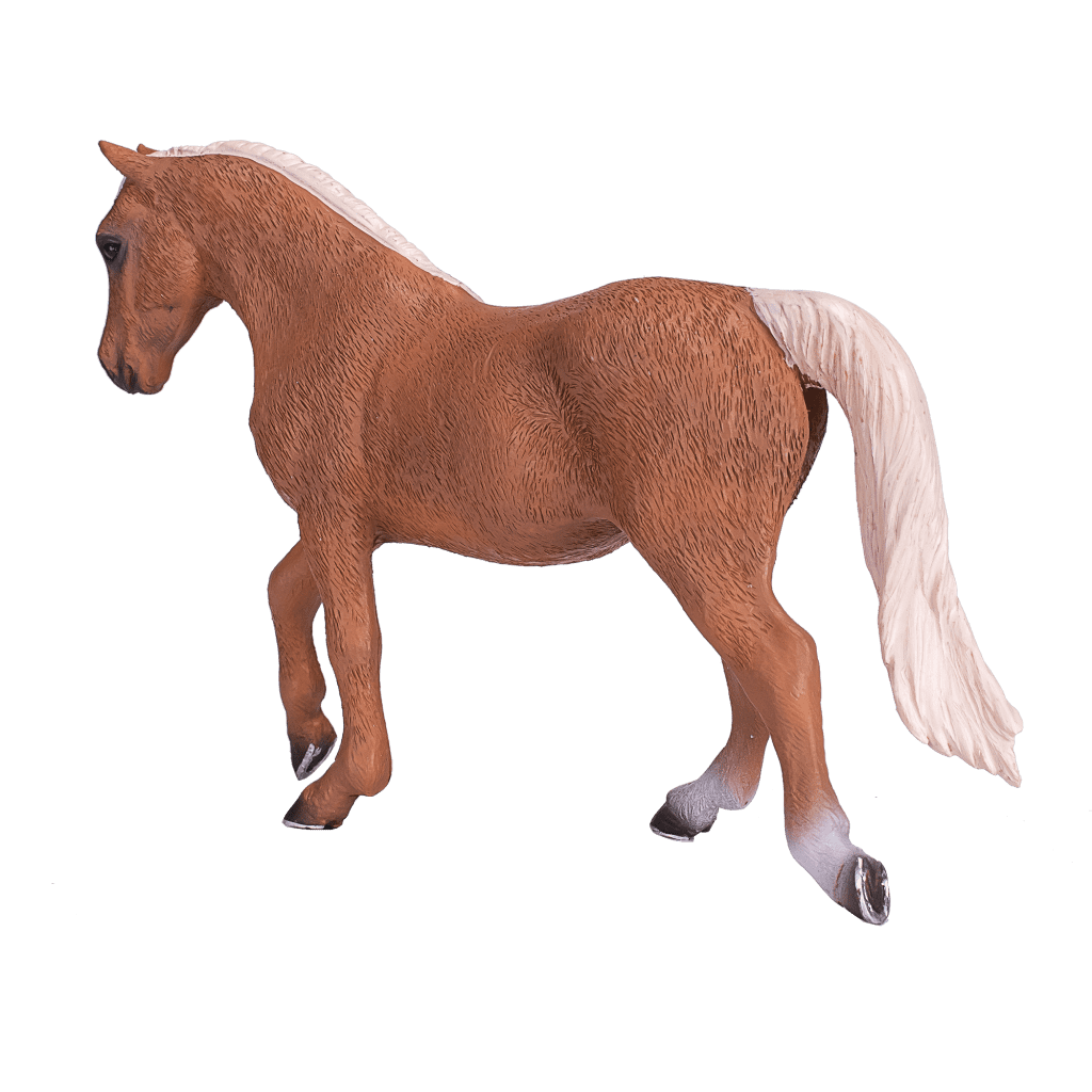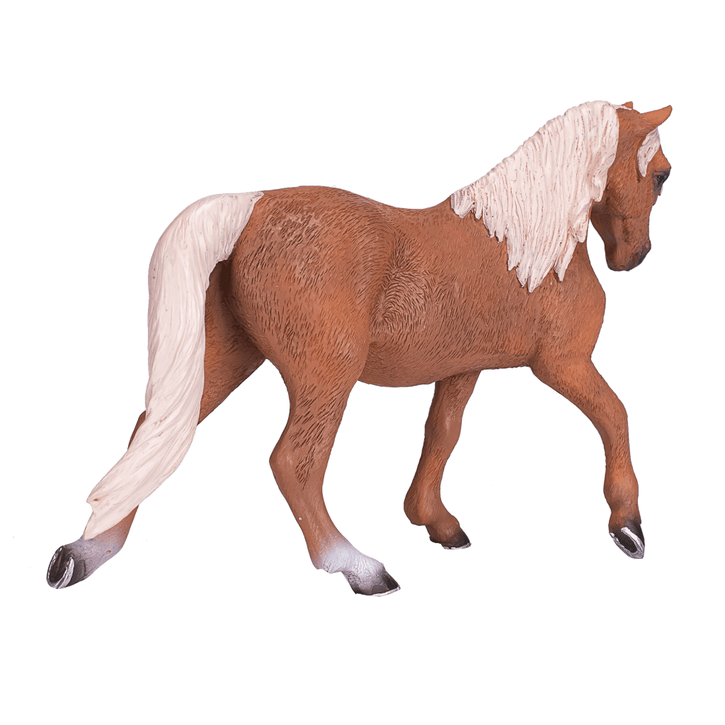 Detajlna figura žrebca Palomino Morgana, ki predstavlja eno najbolj cenjenih pasem konj z elegantnim videzom in močno telesno zgradbo. Njegova značilna dlaka palomino, ki se meša z zlatimi odtenki, skupaj z njegovimi značilnimi lastnostmi in močno telesno zgradbo naredi to figuro edinstveno. Izdelana iz visokokakovostnega PVC (neftalat), varna za otroke od 3. leta starosti dalje. Idealna za zbiranje, poučevanje o konjih ali kot igrača. Izdelek ima ročno poslikane podrobnosti.