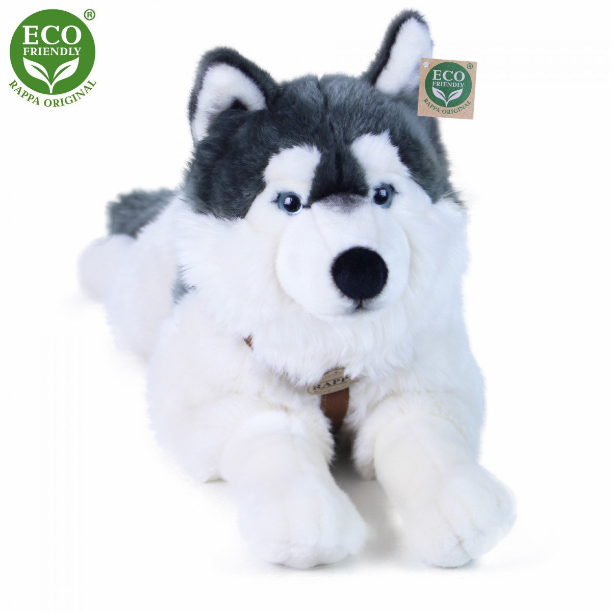 Rappa Velik plišast pes husky s pasom 60 cm EKOLOŠKO PRIJAZNO