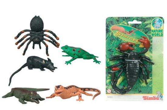 Gumijaste raztegljive živali. Škorpijon, pajek, podgana, krokodil, kuščar in žaba. Dolžina: 14 cm.