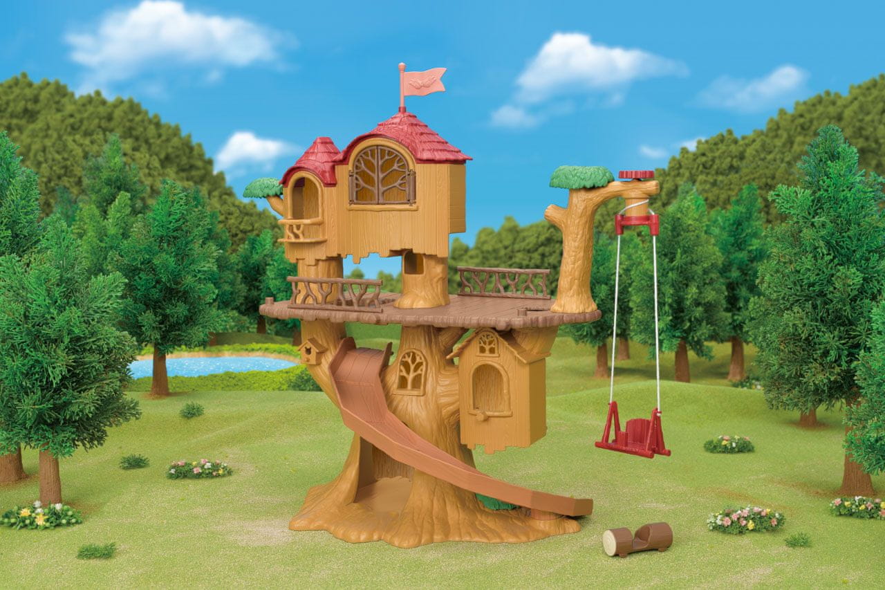S to pustolovsko hišico na drevesu se lahko igrate na veliko načinov! Gugalnico lahko uporabite kot dvigalo. Na tobogan postavite lesen hlod in uživajte v vožnji navzdol. Hiška na drevesu ima štiri majhne sobe. V notranjosti drevesa je skrivni prehod samo za otroke. Terasa hišice na drevesu se lahko odstrani in se z njo lahko igrate ločeno. Uživajte v še večji zabavi z dodatnimi figuricami in dodatki Sylvanian Families (naprodaj ločeno). Igralni kompleti in figurice Sylvanian Families so brezčasne in visokokakovostne igrače. Igra spodbuja otrokovo domišljijo. Vključuje: 1× hiška na drevesu, 2× ograja, 1× gugalnica/ dvigalo, 1× tobogan, 1× lesen hlod. Starost: 3+
