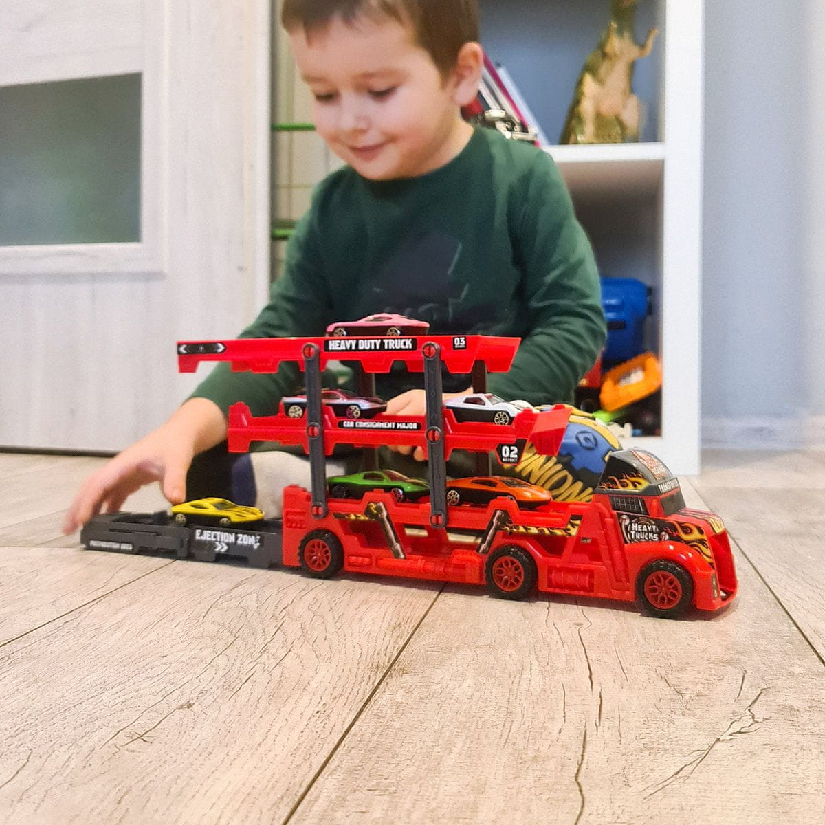 • PRIKOLICA +  6  ULITIH AVTOMOBILOV – komplet sestavlja tovornjak in 6 avtomobilov. Avtovleka ima funkcijo zlaganja, zahvaljujoč kateri lahko enostavno odstranite avtomobile. Igrača je bila narejena zelo skrbno, z reprodukcijo vseh podrobnosti. Deluje realistično, kar otroka spodbuja k igri.