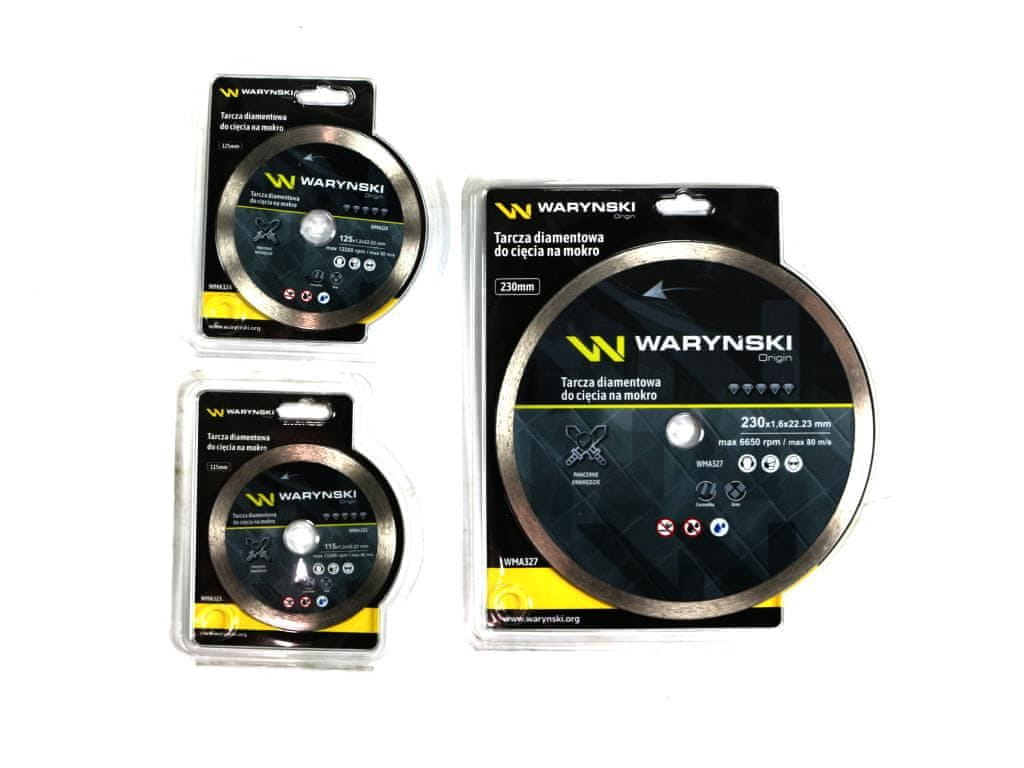 Diamantna plošča za mokro rezanje, polna, 125 × 22,23 mm, Waryński Celoten opis