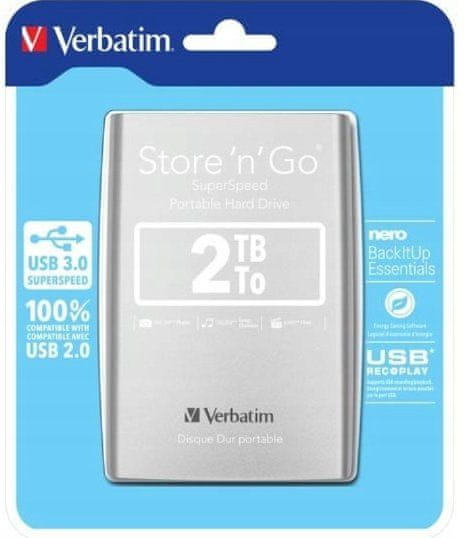 Verbatim Store´n´ Go 2,5" 2TB USB 3.0 Silver