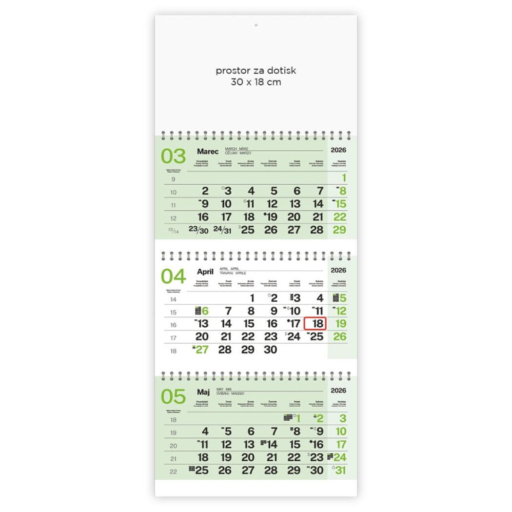 PIGO Koledar stenski 3-delni posloven špirala zelen 2026
