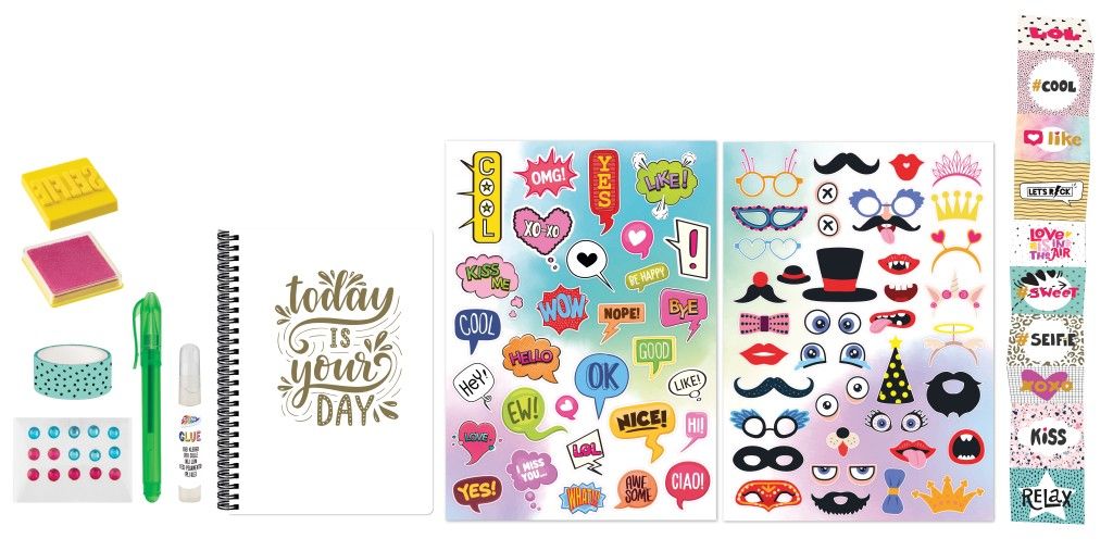 Dnevnik „Selfie“ – že imate celotno zbirko čudovitih selfijev? Potem jih lahko zdaj zberete v ustvarjalnem dnevniku selfijev. V tem dnevniku imate veliko prostora za vse svoje fotografije. Z obojestranskim lepilnim trakom in lepilom lahko svoje fotografije preprosto nalepite v dnevnik. Strani in fotografije okrasite z zabavnimi nalepkami, selfie žigi in veselimi besedili. Dnevnik vključuje nalepke, žige, samolepilne kamenčke, svinčnik in drugo.
