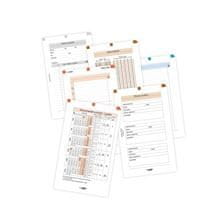 • Tedenski komplet A7 vsebuje: dnevnik, koledar za načrtovanje, dvostranski tedenski planer, ne pozabi, ključna področja, telefonski imenik, liste za beležke