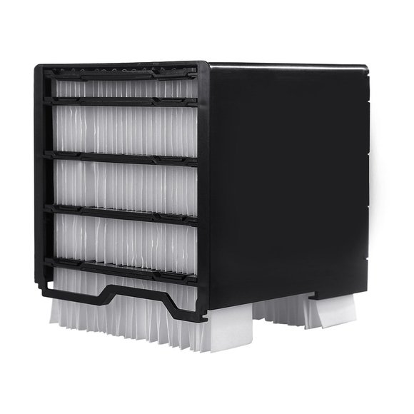 Zamenjava starega filtra za novega ne more biti lažja. Odprite sprednji del mini prenosne klime (sivo rešetko) in potegnite filter v notranjosti navzdol in navzven, da ga odstranite. Nato pa samo obrnite postopek in v nekaj sekundah je vaš novi filter na mestu. Zaprite rešetko, napolnite rezervoar, počakajte par minut, da filter vpije vso hladno vodo in ga vklopite. Vaša mini prenosna klima bo spet kot nova!