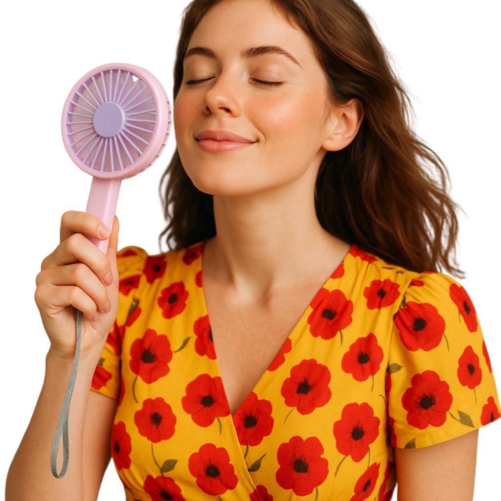 ki se popolnoma prilega modnemu, ženstvenemu slogu. Ni le eleganten ampak tudi izjemno funkcionalen . Zahvaljujoč zmožnosti , da ročaj zloži za 110 stopinj , se bo ventilator prilegal v katero koli torbo ali pa ga postavite celo na mizo, in njegova nizka teža (le 75 g) pa poskrbi, da ga boste vedno nosili s seboj v čisti užitek. ☀️3 NAČINI MOČI☀️ Opremljen s tremi načini moči omogoča