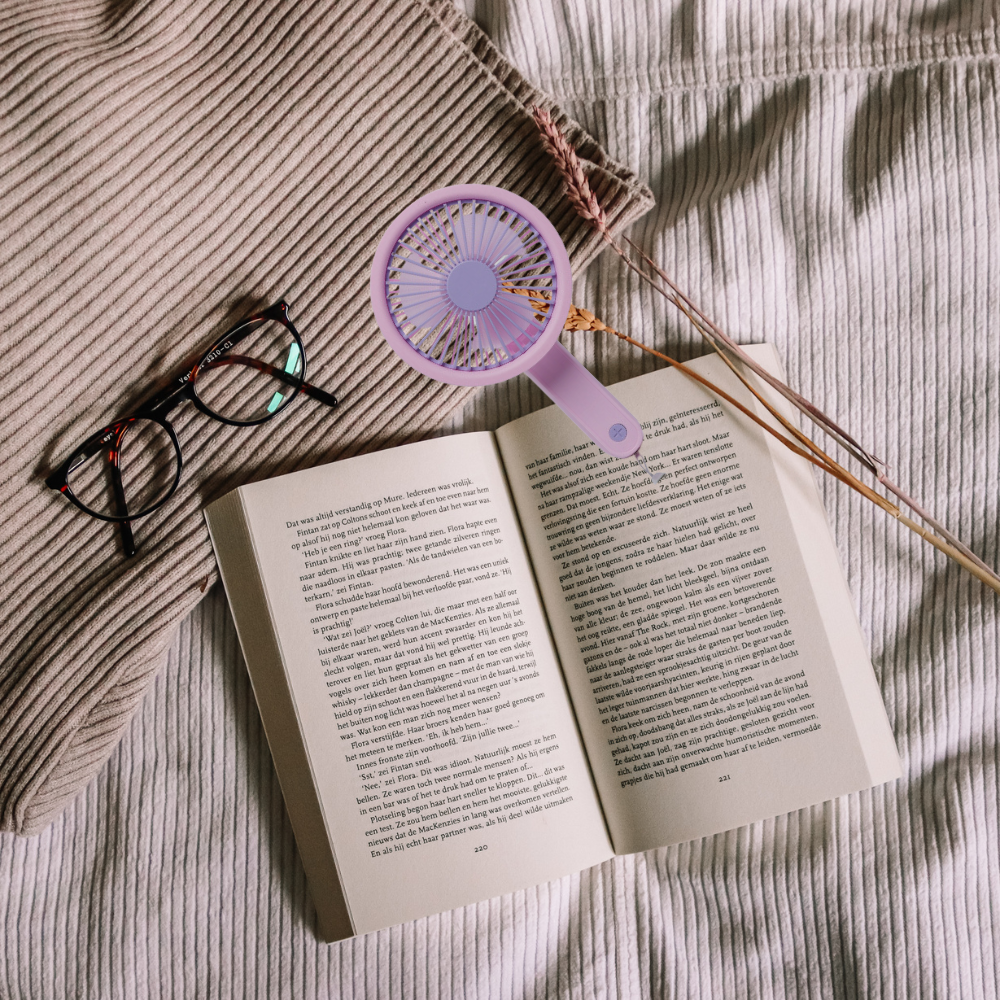 ⭐️ Naš roza in vijolični prenosni ventilator je popolna rešitev!