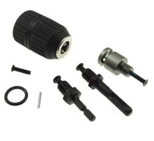Vrtalna glava s kompletom adapterjev. Samozaporna vpenjalna glava za svedre s premerom 2–13 mm. Celoten opis