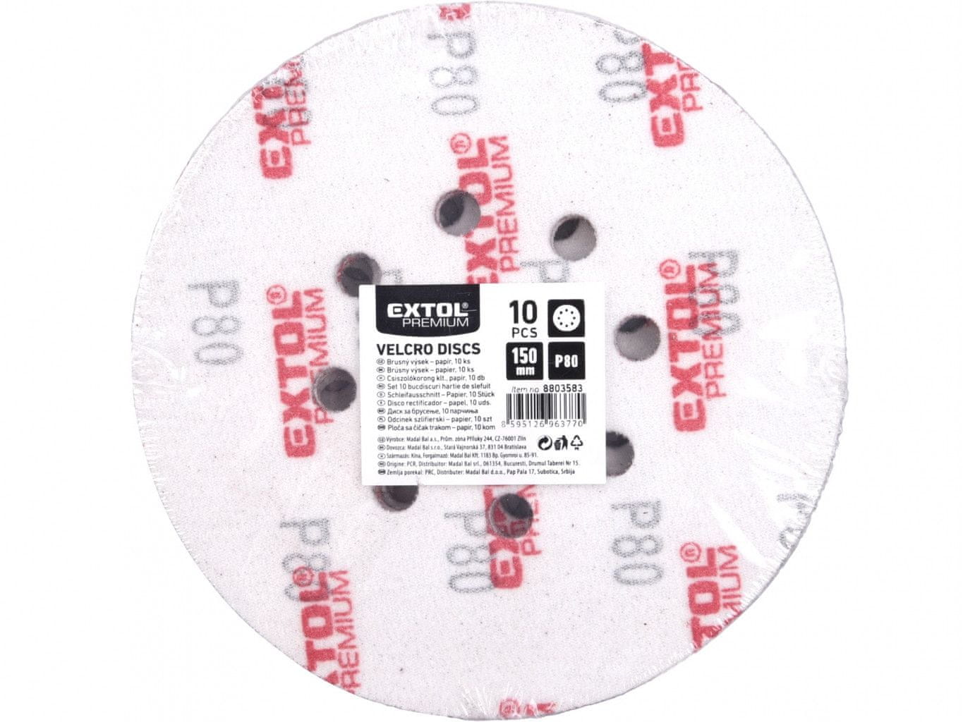 Extol Premium Brusni papirji rezina, ježevi trakovi, bal. 10ks, 150mm, P80