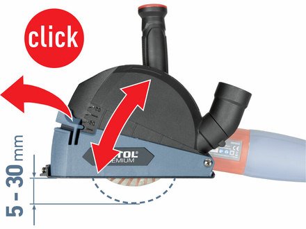 Izpušna napa/adapter za rezanje s kotnim brusilnikom, ?115/125 mm prednastavljeni položaji zaklepanja določajo rezani material: za disk s premerom 125 mm je rez 5–30 mm, za disk s premerom 115 mm pa. Celoten opis