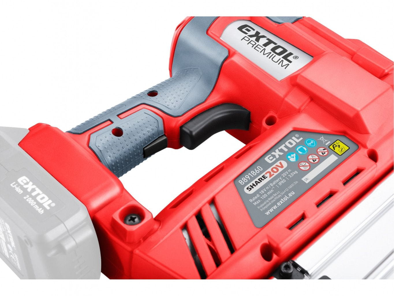 Extol Premium Žeblji/spenjalnik jaz SHARE20V, 20V Li-ion, brez baterije in polnilca