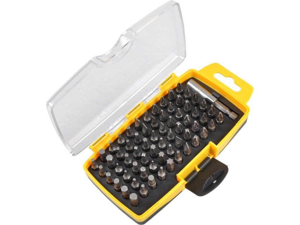 Komplet 67 nastavkov Fieldmann iz krom-vanadijevega jekla v praktičnem plastičnem etuiju. Vsebuje nastavke različnih profilov in velikosti – križne, ploščate, TORX, imbus in druge. Primerno za profesionalno in domačo uporabo v delavnici ter pri popravilih elektronike in vozil. Celoten opis