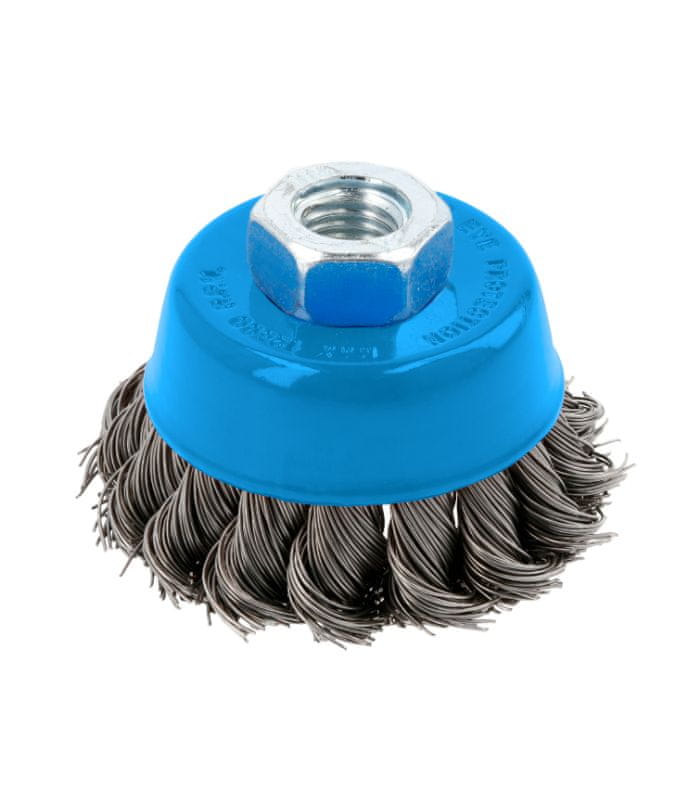 • za kotne brusilnike; • jeklena žica; • opremljena z debelo, kakovostno pleteno žico, ki omogoča visoko učinkovitost med čiščenjem in drugimi deli; • premer žice 0,5 mm; • Navoj M14; • maks. vrtenje 8500 vrt / min; • idealna za čiščenje zvarov, čiščenje površin, odstranjevanje rje, odstranjevanje barve in še veliko več. • Ø 65 mm