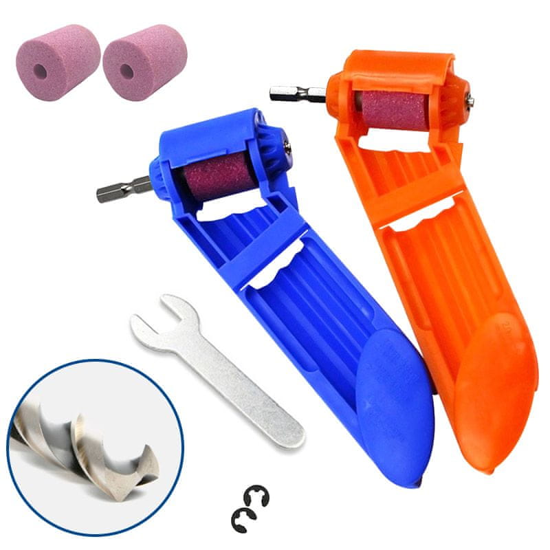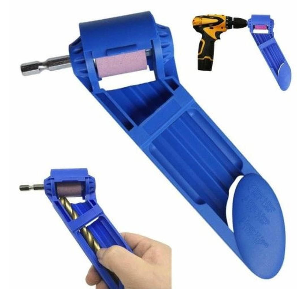 Kompakten prenosni brusilnik svedrov . Iz lahke in trpežne plastike, ki omogoča hitro brušenje svedrov med odmorom od dela.