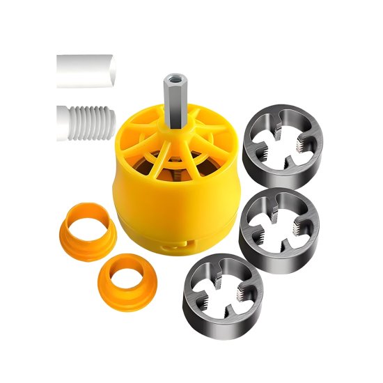Hitra izdelava navojev na PVC ceveh z električnim vrtalnikom. Vključuje 3 matrice za natančne navoje. Odlično za vodovodarje in DIY uporabnike. Prihrani čas in izboljša kakovost montaže. Celoten opis