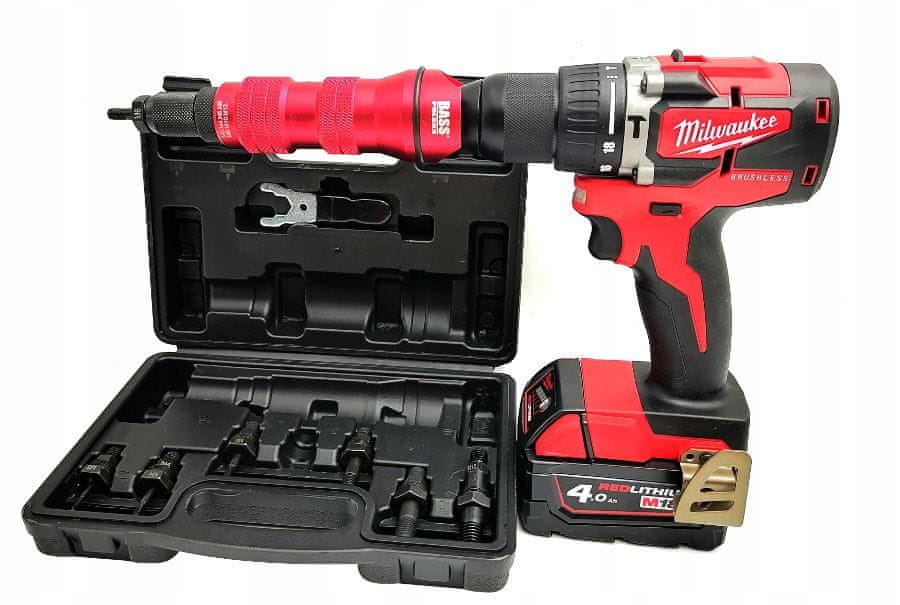Zahvaljujoč tej napravi lahko na neverjetno enostaven in hiter način izdelate pritrdilne elemente z zakovicnimi maticami . Zakovica za  vijačnik / sveder  je v celoti izdelana iz jekla – izjemno trdna konstrukcija. Vse skupaj je v plastičnem  kovčku.  Adapter ustreza vsakemu standardnemu  izvijaču ali vrtalniku.