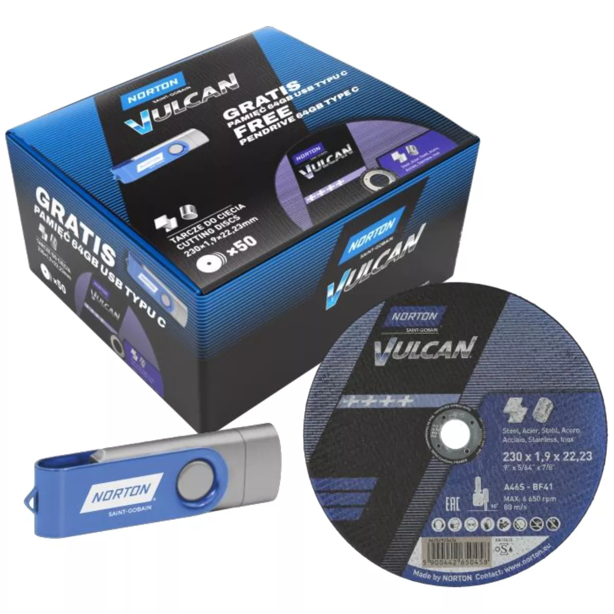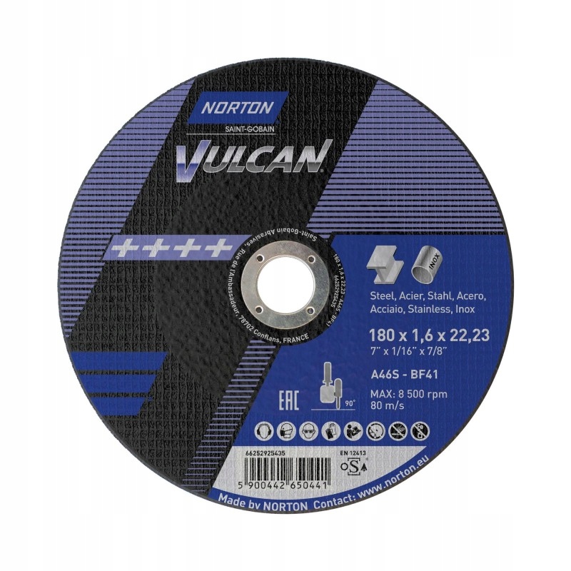 • izkušnje blagovne znamke Norton zagotavlja ne le najboljše prilagajanje izdelka uporabi, temveč je tudi zagotovilo za njegovo učinkovitost, varnost in najboljše rezultate NORTON VULCAN REZALNI DISK ZA KOVINO IN JEKLO 230×1,9 mm