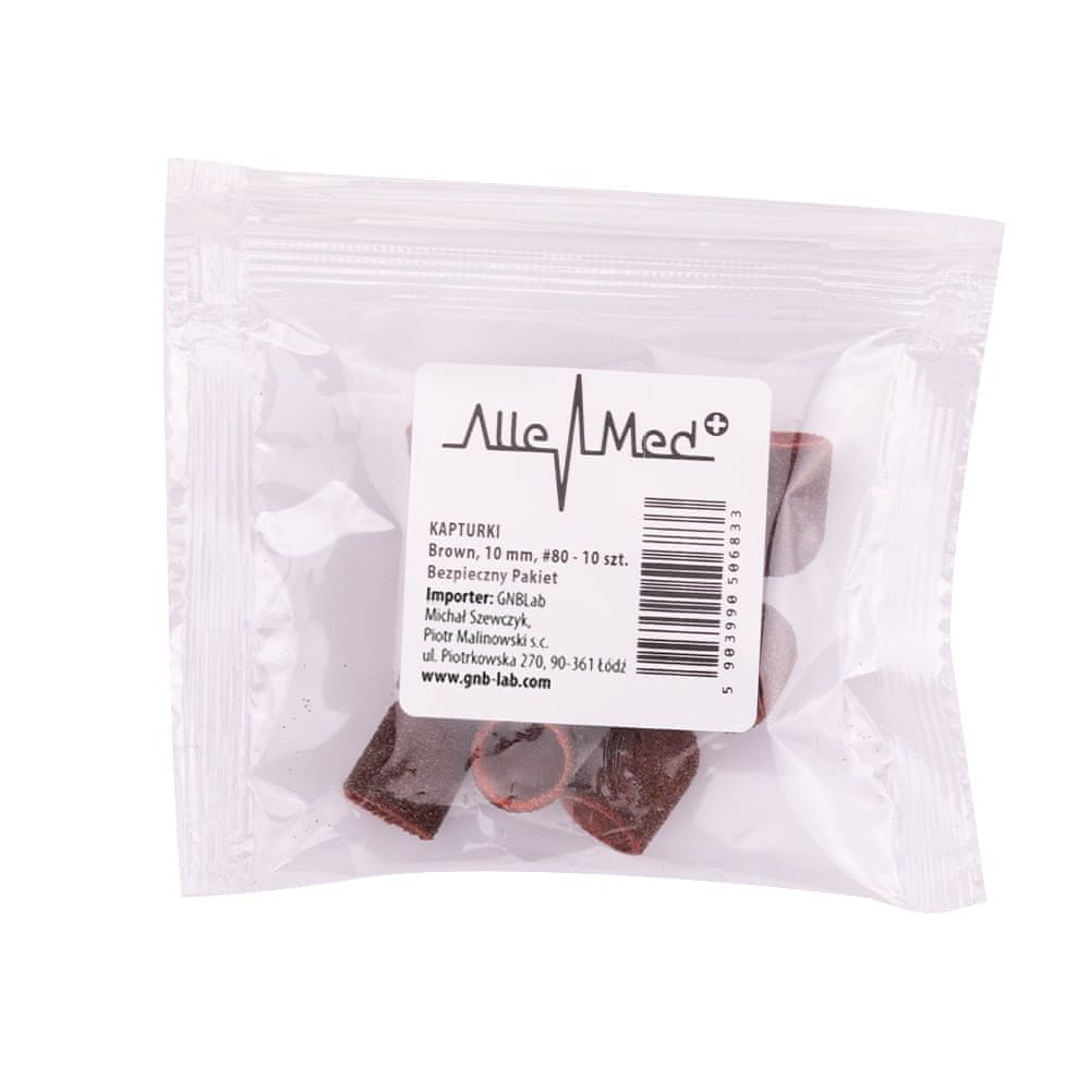Brusilne kapice za pedikuro z bombažno sredico 10 mm, granulacija 80, rjave, AlleMed 10 kosov