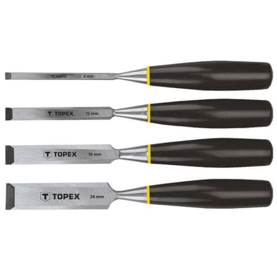 Sada sekáčov TOPEX (ref. č. 09A310) je praktická sada pre každého kutilského nadšenca. Štyri sekáče na drevo sú vyrobené z vysoko kvalitnej nástrojovej ocele. Majú ergonomické plastové rukoväte, ktoré pohodlne padnú do ruky. Sada obsahuje veľkosti vhodné pre väčšinu základných prác. Značka TOPEX je určená pre kutilov.
