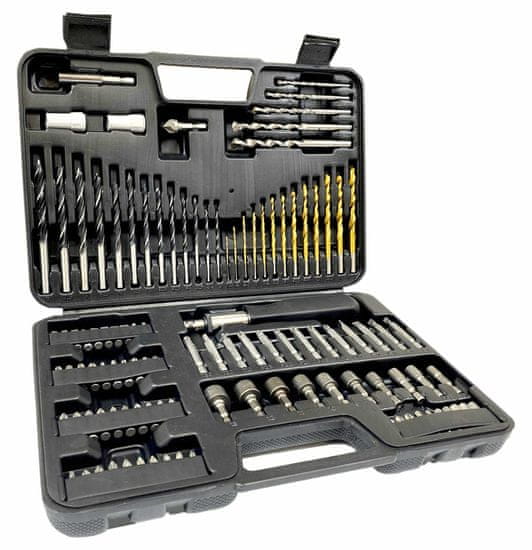 Set 109 delni bitov in svedrov v kovčku – izvijač z račno Celoten opis