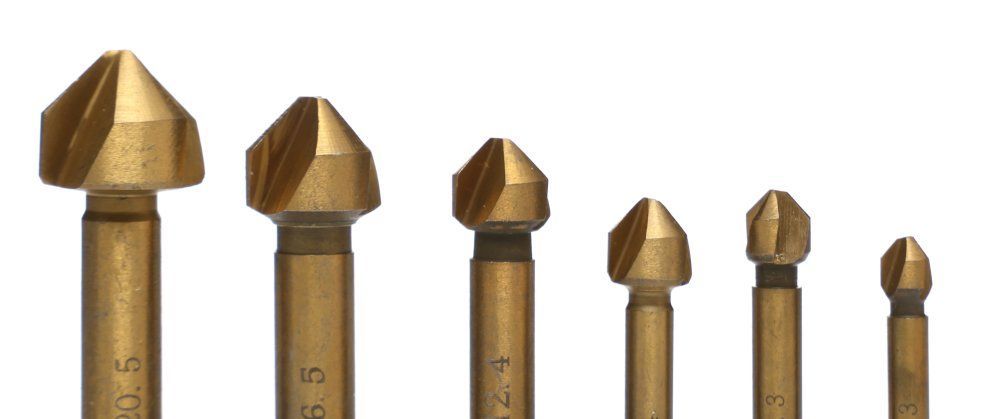 Komplet šestih grezil, prevlečenih s plastjo titana za večjo vzdržljivost pri premerih 6,3 – 20,5 mm in dolžini stebla 45 – 67 mm, za razigljevanje, posnemanje in grezenje lukenj za vijake z ugrezno grezo.