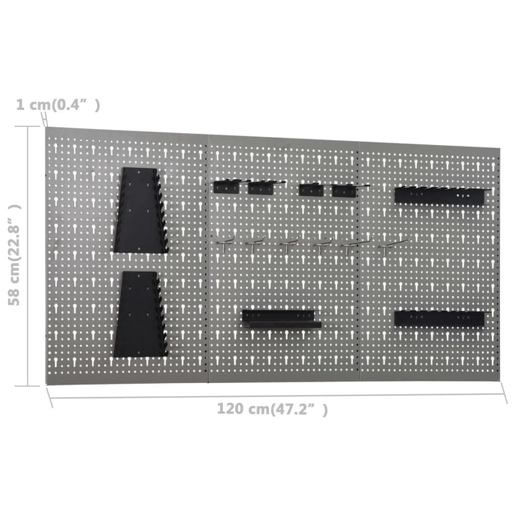 Ti paneli za orodje so izdelani iz trdnega jekla ter imajo dovolj veliko nosilnost za različna orodja, kot so svedri, klešče, izvijači in ključi. Ti paneli so perforirani za enostavno in varno nameščanje orodja. Za dodatno trdnost lahko 3 stenske panele namestite skupaj. S praktično širino 160 cm so odličen dodatek delovni mizi in omaram v delavnici.