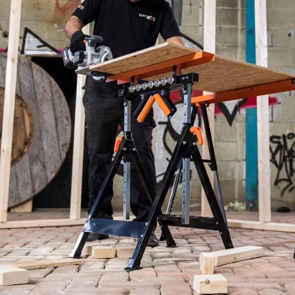 Z večnamenskim nosilcem pride izdelek s štirimi funkcijami v delavnico ali hobi sobo. Z le nekaj gibi lahko preklapljate med delovnim stojalom, stojalom z valji, stojalom s krogličnimi valji in stojalom z V-valji. Poleg tega je višina nastavljiva od 83 do 129 cm, tako da vam ni treba delati v sključenem položaju. Tako lahko delovno mizo optimalno prilagodimo individualnim potrebam. V ta namen je opremljen s potrebnimi vijaki in gonilkami na ustreznih točkah za fiksiranje izbrane višine ali izbrane variante podnožja.