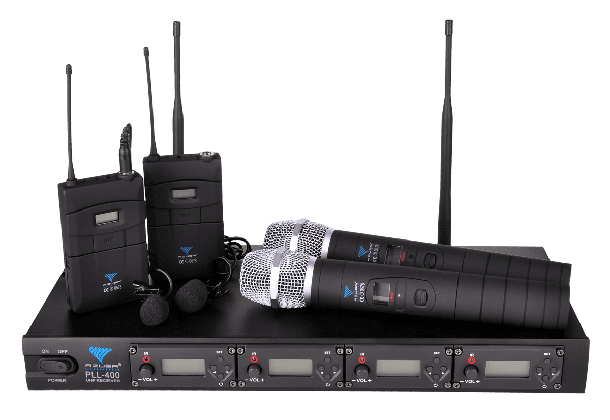 Mikrofon PLL-400 UHF, 4 kanali (2 ročna + 2 na vpenjanje)