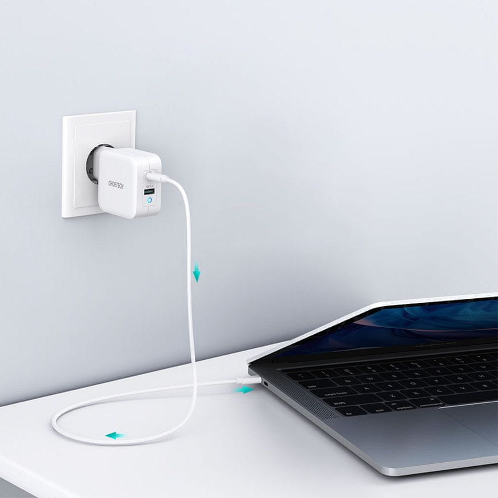 Choetech PD8002 omrežni polnilec – GaN Power Delivery 65W – bel