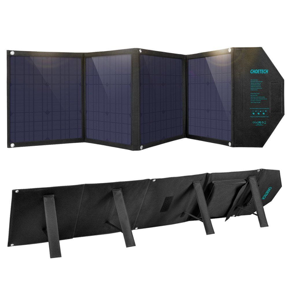 Velik solarni polnilnik Choetech z močjo do 80 W z vrati DC, USB C in 2 x USB s tehnologijama hitrega polnjenja Power Delivery in Quick Charge (SC007)