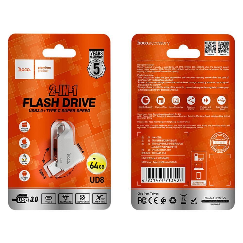 Hoco 64 GB USB 3.0 ključ (USB A + USB C) Hoco UD8 nikelj