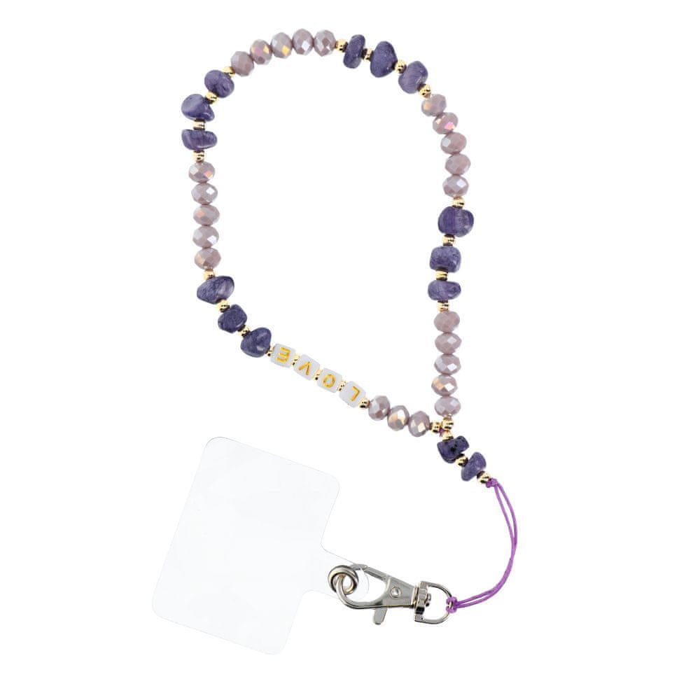 OEM Vrvica za telefon, obesek za telefon - LOVE / dolžina vrvice 44 cm (22 cm v zanki) / za zapestje - vijolična