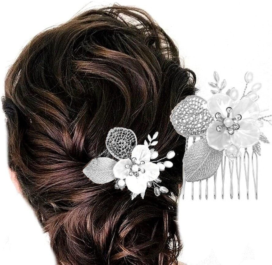 Ta eleganten srebrn češelj za poročno cvetlično dekoracijo las združuje bisere, cvetje in cirkone, s čimer ustvarja popoln dodatek za vsako poročno frizuro. Z dimenzijami 8 cm x 8 cm se popolnoma prilega vsaki poročni priložnosti. Celoten opis