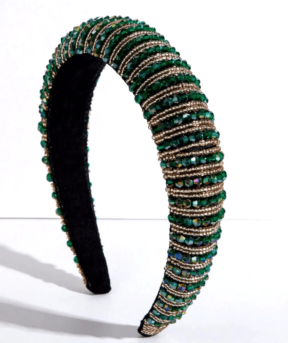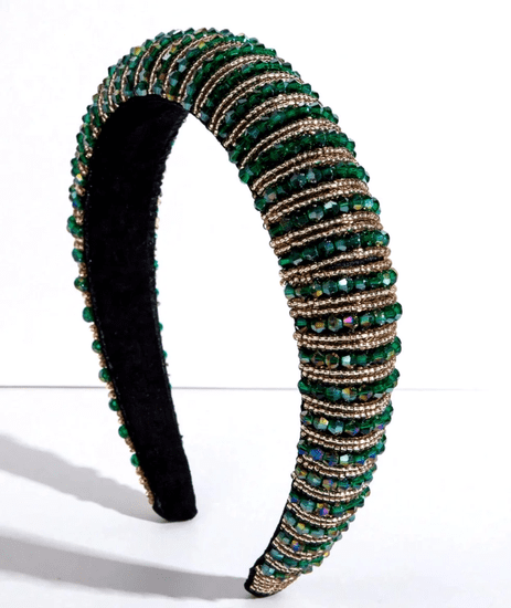 Camerazar Elegantna široka baročna zelena diadema z nakitom