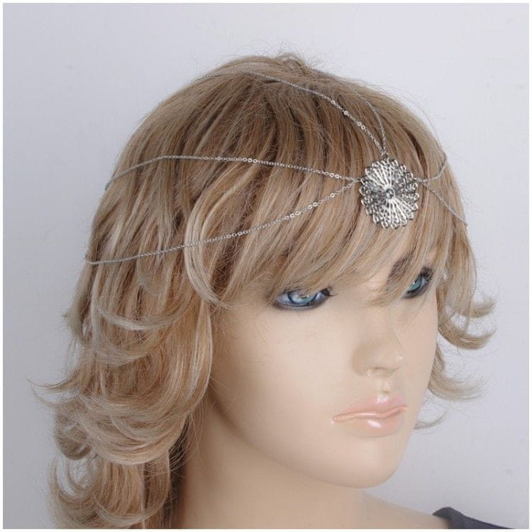 Flamenco Mystique Boho diadem s okrasnim Tikka, srebrna roseta, zlata barva