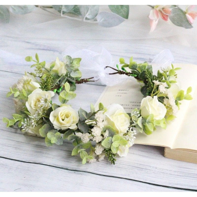 Flamenco Mystique Romantičen venec za glavo iz kakovostnih umetnih cvetov, boho stil, 22x20 cm, 70g
