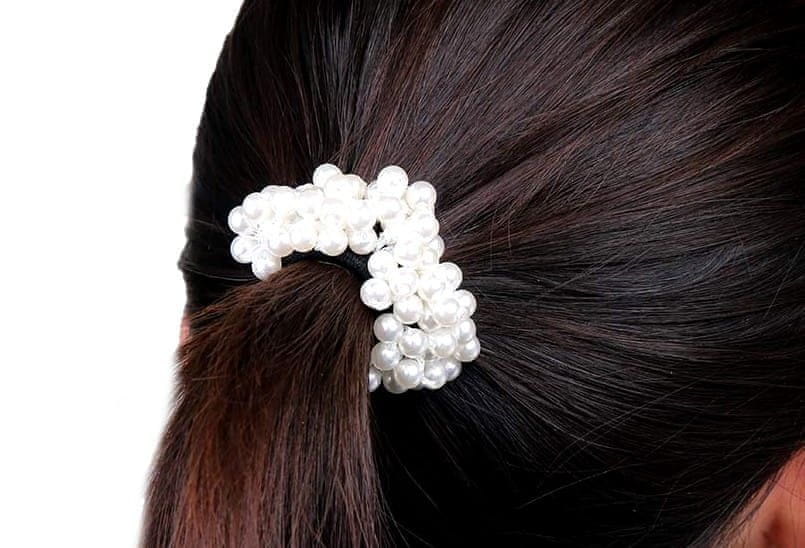 For Fun & Home Elastična okrasna gumica za lase s perlami za čop, univerzalna velikost, zelo lahka
