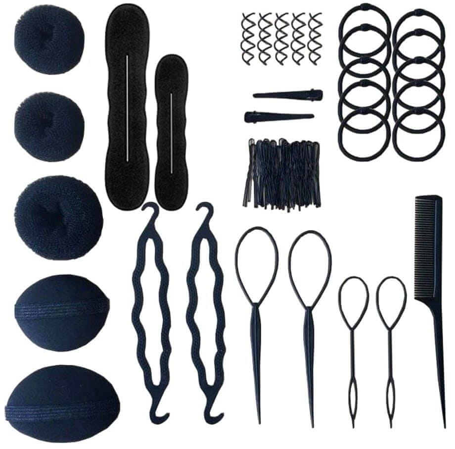 For Fun & Home Profesionalna frizerska oprema za pričeske z 21 elementi, črne sponke in elastike za lase