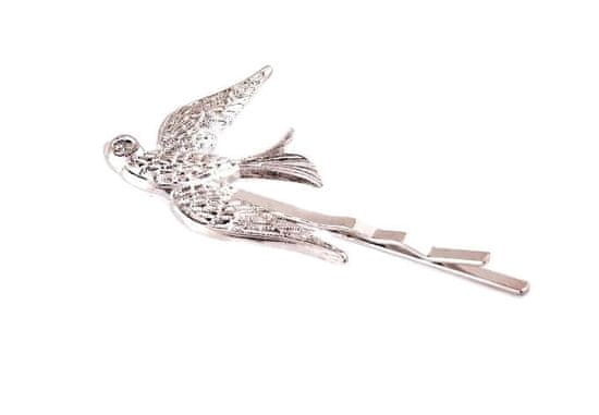 For Fun & Home Ptičja zaponka za lase, bižuterijski kov, univerzalna velikost 6.5x2 cm, srebrna