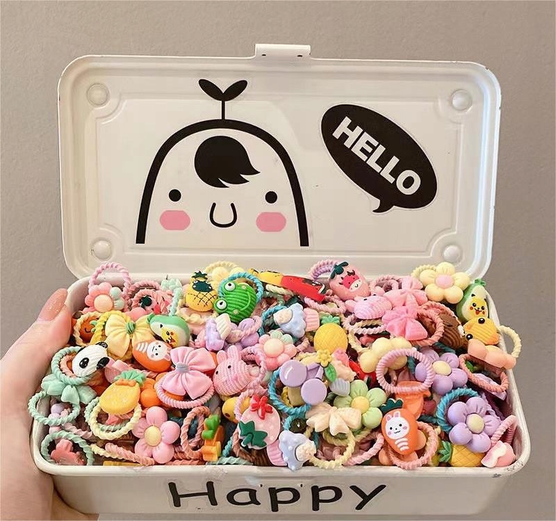 Komplet 200 pisanih otroških gumic za lase z ljubkimi vzorci