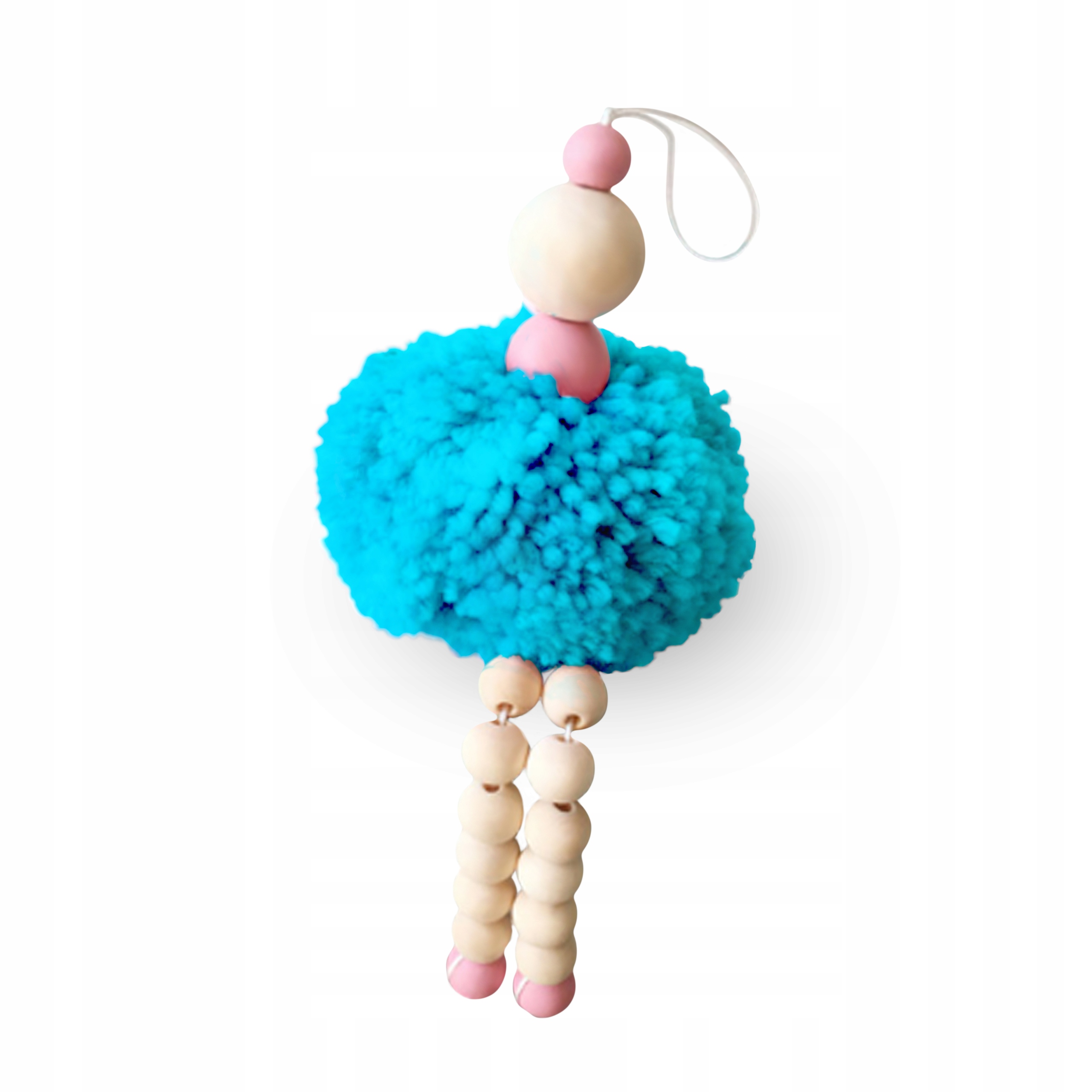 Obesek je narejen iz dvobarvnih lesenih perlic: bež in roza, nanizanih na vrvico. Ima tudi volnen cof, ki posnema široko krilo, značilno za balerine.