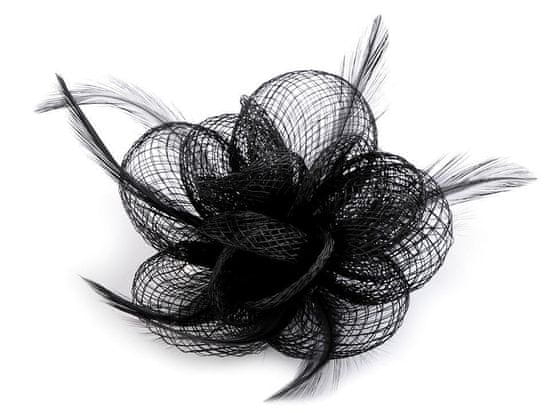 Eleganten fascinator v obliki cvetja uporabite za družabne dogodke, kot so plesi, poroke ali obiski gledališča. Lahko ga pripnete tudi kot zanimivo broško. Cvet je izdelan iz modistične mreže in je okrašen s perjem. Na zadnji strani je sponka z zobci, ki ima tudi zaponko za broško. Lahko jo pritrdite na lase, pa tudi na klop, torbo itd.
