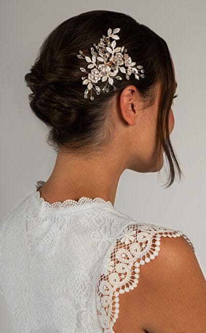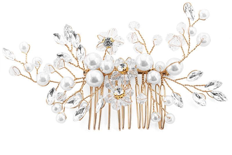 Čudovit pozlačen glavnik za lase s kristali in biseri